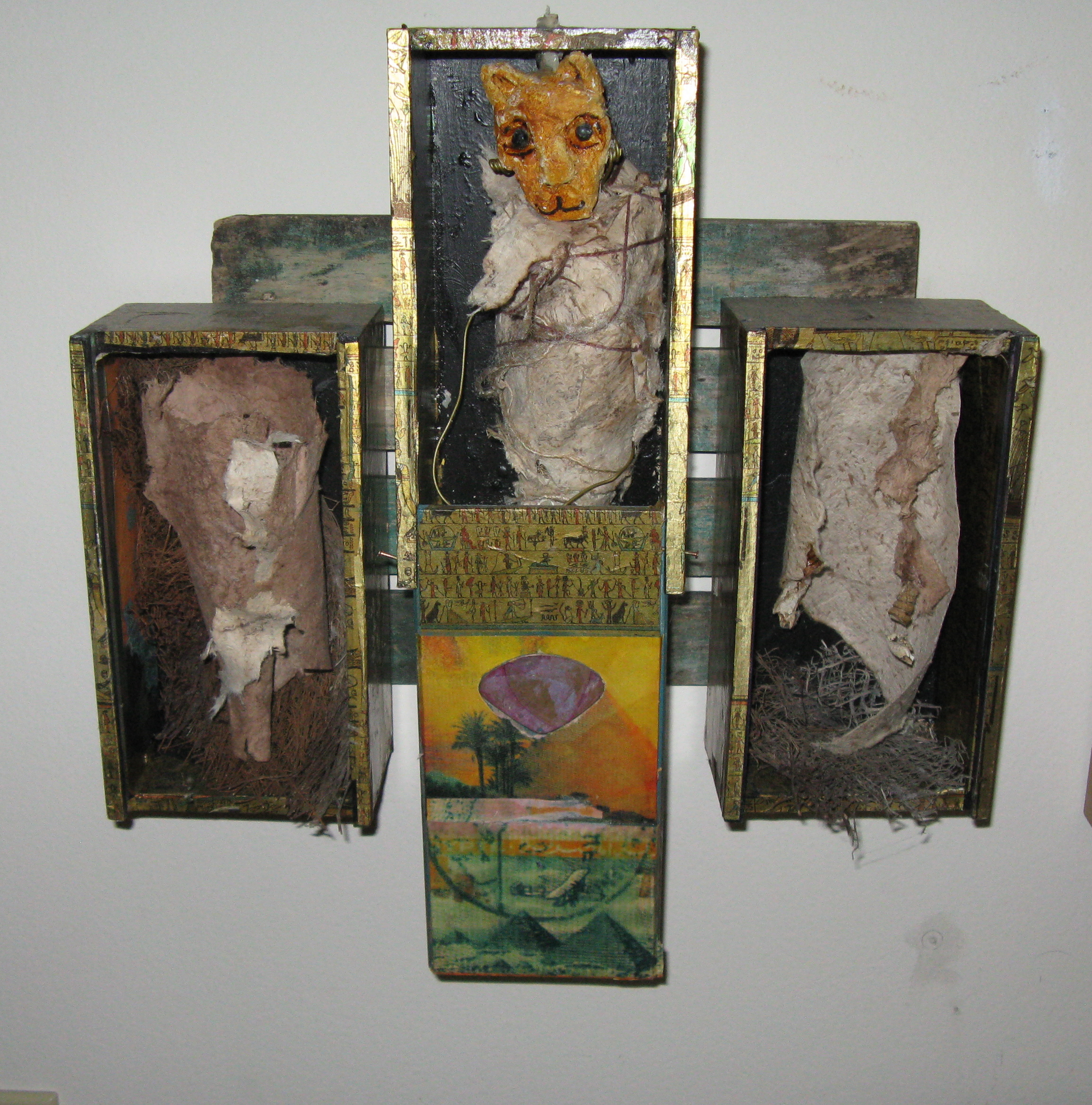 I met Lenore Tawney in 1970s at Hunterdon Art Center (NJ). Then, her weavings attracted me. Years later, her box form pieces resonated in my mind’s eye. Nick Bantock’s books compelled me to travel to Vancouver to see his original, penetrating collages with my own eyes. Such affinities guide me while finding my own voice and signature style.
