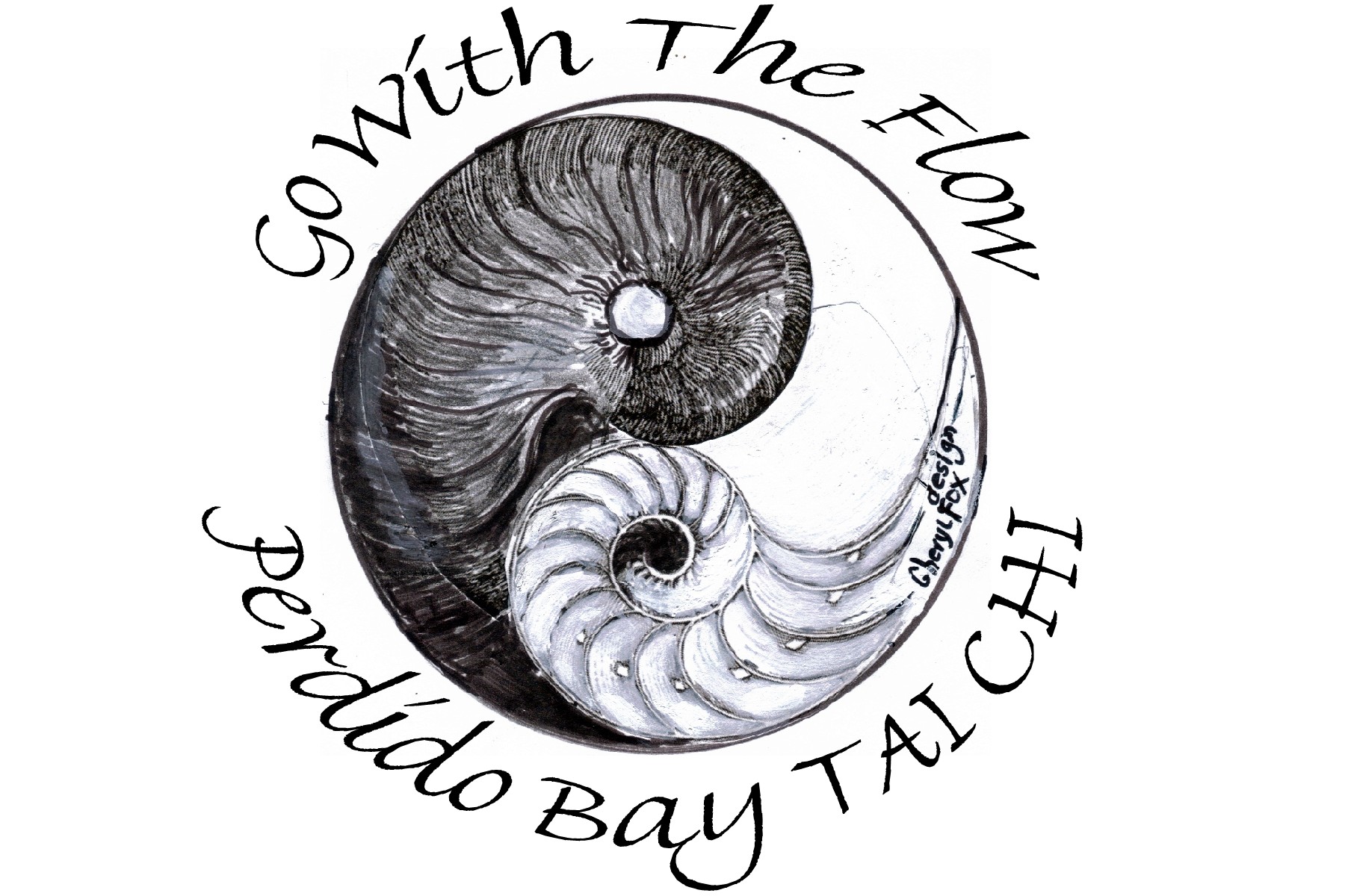 Nautilus shell image expressed as Yin Yang symbol is my design. I printed on student T-shirts and used imagery on Tarot cards 8 (Balance) and 10 (Wheel of Fortune).